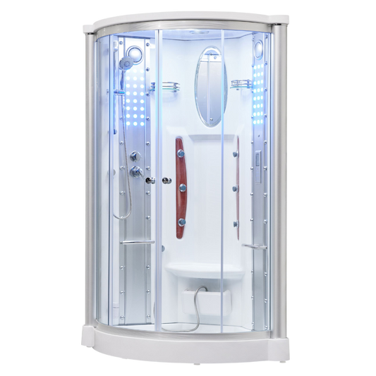 All steam showers and tubs carry a (7) seven-year structural warranty against manufacturer defects and should be installed by a licensed plumber and electrician. The structural warranty protects the structure of the steam shower from peeling, fading, delaminating, or cracking. Structural components include acrylic panels, shower pan, ceiling, and glass panels. All steam shower parts carry a (1) one-year guarantee against defects.